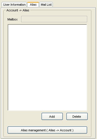 You can click [NEW] to create a new maillist and give it a new name (can not be duplicate from existing account name), then choose the account in left list and click [Add User] to add to the list. When you done, just click [Save] to store the list to mail list file. When you done, a maillist account will be created and show on left list.