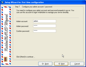 Setup your administrator account & password for remote center then click [Next] to continue.