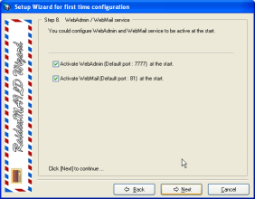 Setup start type for remote center & webmail then click [Next] to continue.