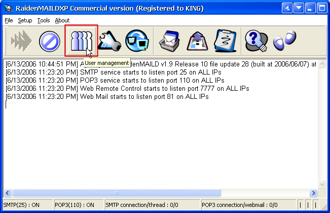 If the services start successfully, you are ready to create your user account. Click [User Management] on main form.