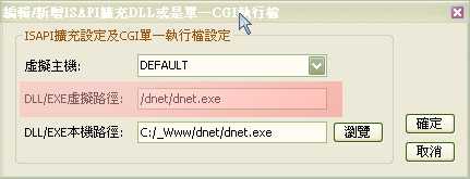 CGI執行檔的位置已經被正確填入,接下來輸入DLL/EXE虛擬路徑